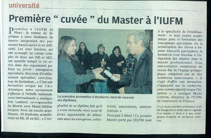 « Après avoir obtenu mon Master IPHD, j’ai tout de suite obtenu un emploi comme enseignante spécialisée en SESSAD (Service d’Education Spéciale et de Soins à Domicile). Evidemment, sans les connaissances et les compétences acquises lors de ce Master IPHD, il aurait été difficile d’obtenir un tel emploi. Aujourd’hui, je suis à l’interface entre l’élève, qui reste ma priorité, ses parents, l’enseignant de la classe, l’enseignant référent et l’équipe pluridisciplinaire qui compose le SESSAD. Suivre la scolarité d’enfants et d’adolescents en situation de handicap, est un travail enrichissant de tous les jours. »